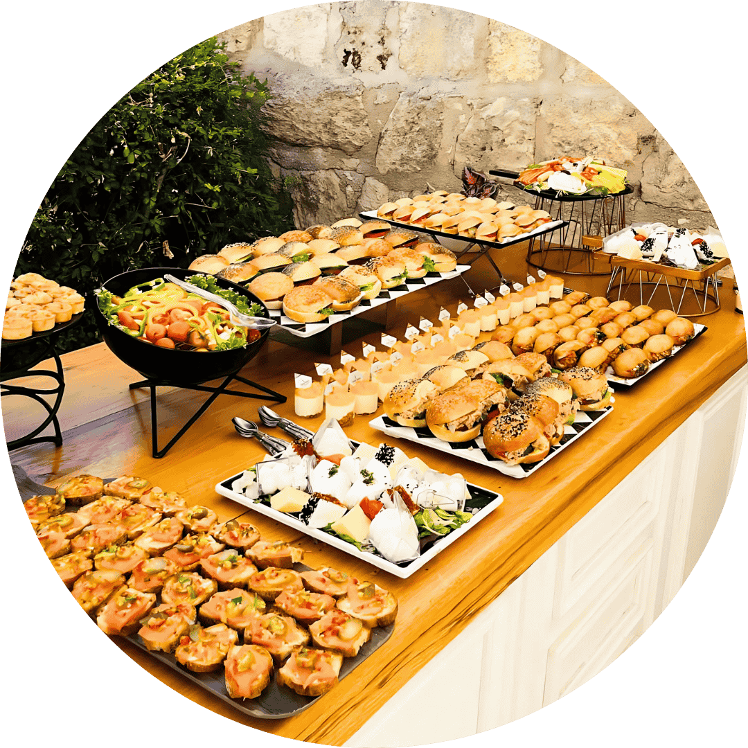 תפריטי קייטרינג עשיר לכל סוגי האירועים ניתן לעשות הזמנות באיסוף עצמי או כולל הובלה לאירוע.